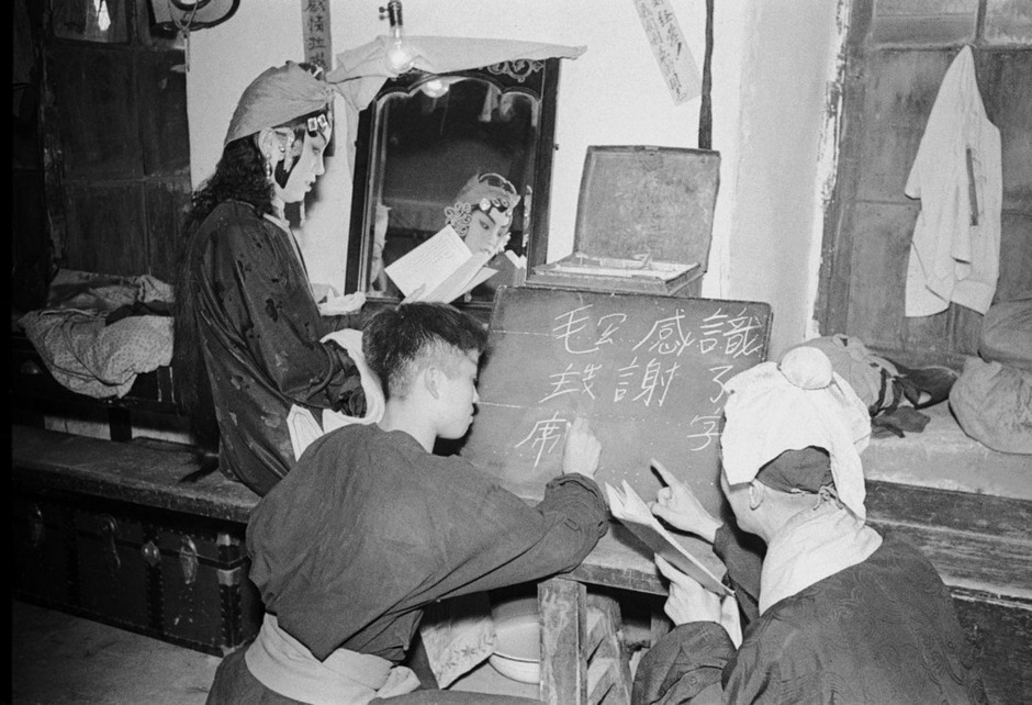 A Tianjin theatrical troupe studies Chinese backstage in 1952 Source Share this:TweetShare on Tumblr Click to share on Reddit (Opens in new window) Reddit Pocket Click to email a link to a friend (Opens in new window) Email Like Loading... Comments are closed.